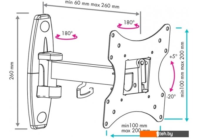 | Расстояние от стены (потолка) | 60 — 260 мм |