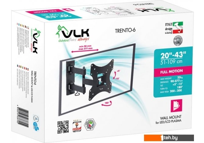 Если хотите купить кронштейн VLK TRENTO-6 (черный) то следует уточнить все параметры и габариты модели перед покупкой. Представленые характеристики на сайте 1teh.by могут отличаться от действительных или указанных производителем. Описание, фото товара и технические характеристики представлены для справки.
