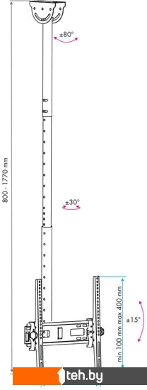 Расстояние от стены (потолка) | 800 — 1 770 мм |