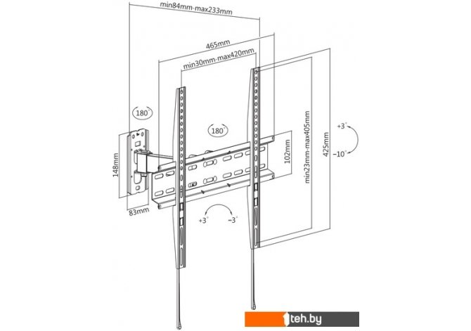 | Расстояние от стены (потолка) | 84 — 233 мм |