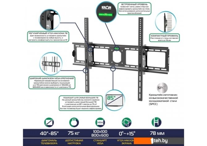 Фотографии, описание и технические характеристики модели кронштейна Onkron UT4 (черный) взяты из открытых источников, официального сайта производителя или представительства Onkron в Республике Беларусь.