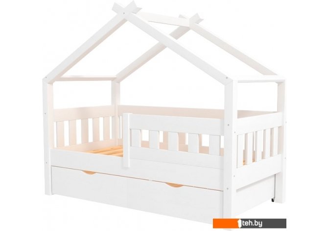 | Информация | - Матрас в комплектацию не входит. - Кровать в виде домика с отделкой белой эмалью — это отличное решение для создания уютного и функционального пространства в детской комнате. Изготовленная из натурального массива сосны, она сочетает долговечность и стиль. Белая эмаль придаёт мебели современный вид и защищает дерево от внешних воздействий, сохраняя его на долгие годы. - Размер спального места подходит для детей разного возраста, обеспечивая комфортный сон и отдых. Эта кровать особенно подойдёт для маленьких комнат, где важна не только функциональность, но и безопасность. Компактные размеры не занимают много места, оставляя пространство для игр и активностей. - Кровать комплектуется ящиком-ложе, который легко превращает её в дополнительное спальное место размером 80?160 см. Это удобно для приёма гостей или если нужно обеспечить дополнительное место для сна в детской комнате. - Модель будет актуальна долго благодаря своей универсальности и продуманному дизайну. Кровать в виде домика — это не только комфортное место для сна, но и яркий элемент интерьера, который можно адаптировать под различные стили. Она идеально подойдет для детской комнаты, а также для малогабаритных квартир или комнат с ограниченным пространством. |
