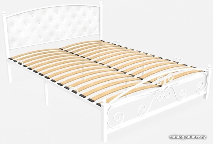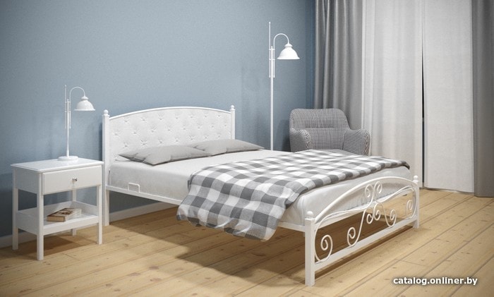 Информация | Кованая кровать Бали с мягким изголовьем - прекрасный выбор для комфортного сна. Особую неповторимость облику кровати придает каретная стяжка изголовья и декоративные элементы изножья. |