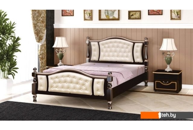 Жасмин 200x160 (темный орех/экокожа светлая, основание металл)