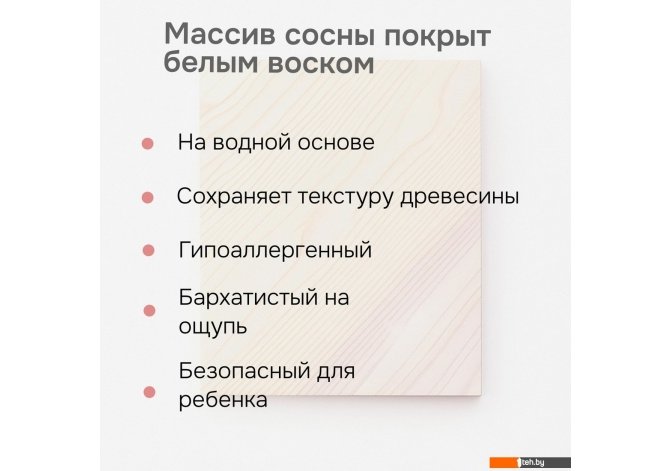 | Информация | - Матрас в комплект не входит. - Эта кровать идеально сочетает современный дизайн, высокое качество и безопасную конструкцию. Изготовленная из натурального дерева, она создаст уютную и творческую атмосферу в любой комнате. - К кровати-домику можно добавить балдахин, установить подсветку и украсить по своему вкусу. В процессе производства использовались только качественные и безопасные материалы, что делает кровать прочной и бесшумной, способной выдержать вес взрослого человека. - Кровать не имеет запаха краски, а источает приятный аромат древесины. Отделка белым укрывистым воском обеспечивает плотное покрытие, полностью скрывающее текстуру дерева и создающее защитный слой. - Это покрытие хорошо сохраняет структуру натурального дерева и позволяет использовать мебель в условиях повышенной влажности. Оно относится к натуральным на водной основе и соответствует всем экологическим стандартам. - Кровать комплектуется настилом, поэтому вам нужно будет докупить только матрас. Собрать изделие можно легко в домашних условиях. |