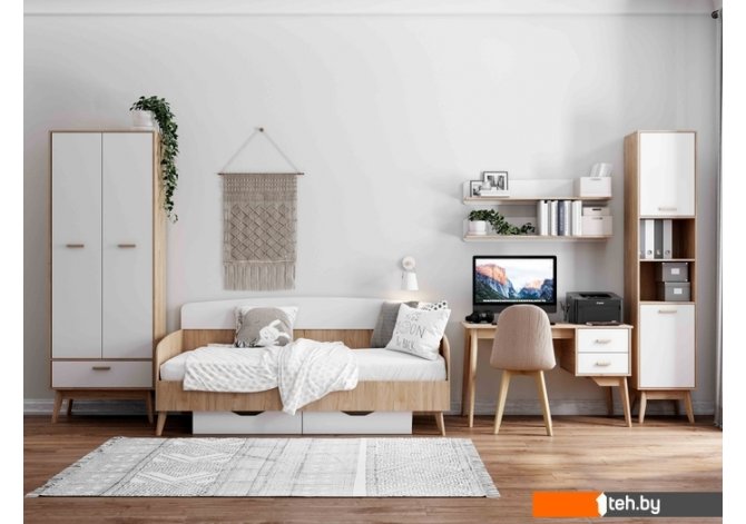 Калгари 90x200 (дуб натуральный светлый/белый матовый)