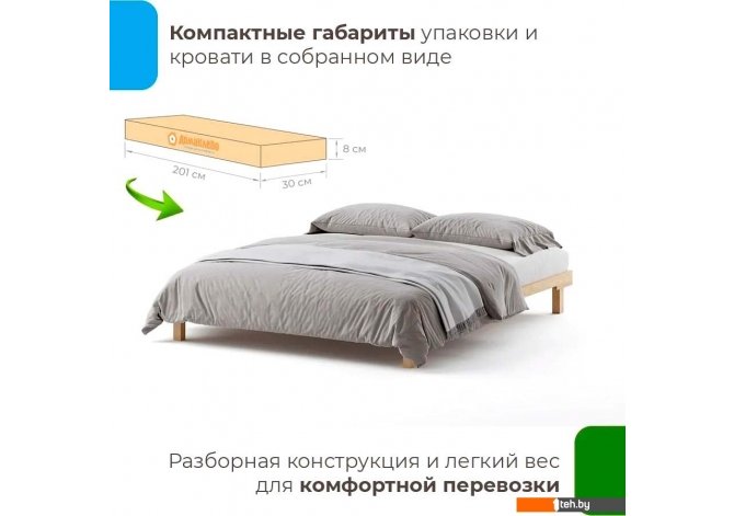 | Информация | - Прочная и надежная конструкция основания выдержит интенсивную нагрузку. - Элементы кровати выполнены из надежных деревянных деталей, обеспечивающих прочность и долговечность. - Спальное место образовано надежными березовыми ламелями, обеспечивающими отличную вентиляцию матраса и предотвращающими скапливание пыли. - Ортопедический эффект основания спального места благоприятно сказывается на позвоночнике и дарит здоровый глубокий сон. - Обратите внимание: матрас, подушки и постельные принадлежности в комплектацию не входят. |