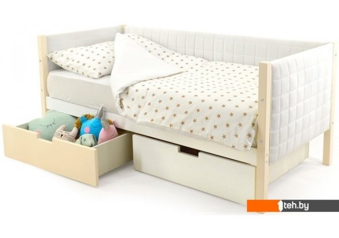 | Информация | Защитный бортик, ящики и матрас приобретаются отдельно.Высота матраса: рекомендуется не менее 15 см.Чехол состоит из 3 слоев: простеганная велюровая ткань, синтепон и спанбонд черный.Фирменная стёжка, в виде небольших квадратов, выполненная в современном скандинавском стиле, придающая эксклюзивный и неповторимый вид кровати.Чехлы огибают бортики и крепятся с помощью застежки-липучки. |