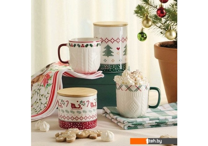 Изделия украшены праздничным рисунком с тематикой ягод и клеток, что придает им особую атмосферу уюта и праздника. Кружки имеют рельефный дизайн и окантовку, что делает их стильными и приятными на ощупь. Возможность мыть в посудомоечной машине обеспечивает удобство в уходе.