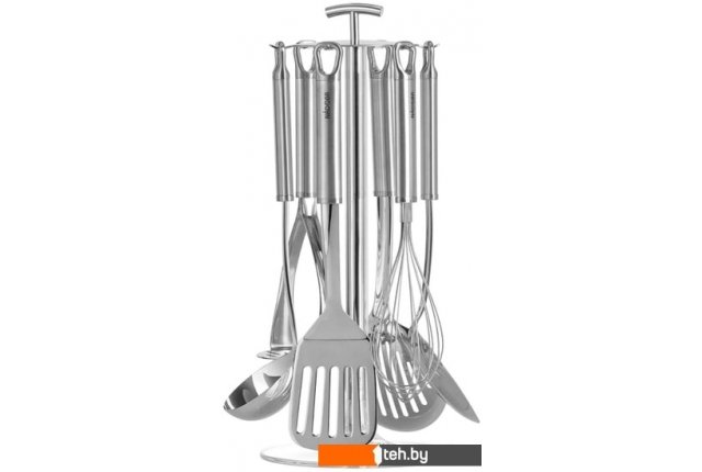 Состав набора | венчик, картофелемялка, ложка, лопатка, подставка, половник, шумовка |