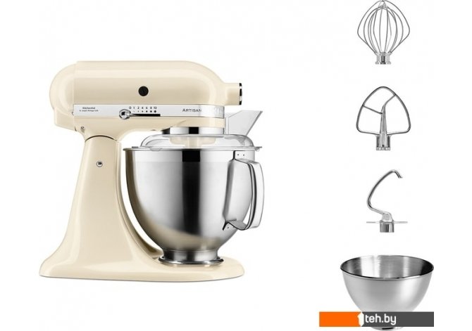 Фотографии, описание и технические характеристики модели KitchenAid 5KSM185PSEAC взяты из открытых источников, официального сайта производителя или представительства KitchenAid в Республике Беларусь.