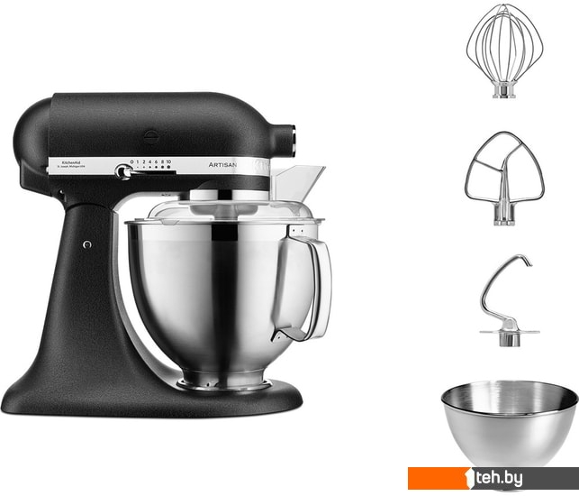 Фотографии, описание и технические характеристики модели KitchenAid 5KSM185PSEBK взяты из открытых источников, официального сайта производителя или представительства KitchenAid в Республике Беларусь.