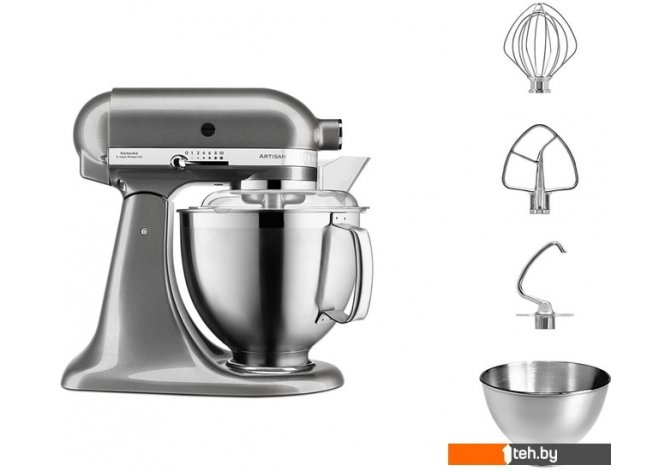 Фотографии, описание и технические характеристики модели KitchenAid 5KSM185PSEMS взяты из открытых источников, официального сайта производителя или представительства KitchenAid в Республике Беларусь.