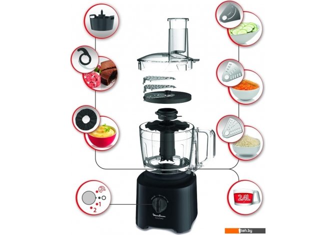 Фотографии, описание и технические характеристики модели Moulinex FP245810 взяты из открытых источников, официального сайта производителя или представительства Moulinex в Республике Беларусь.