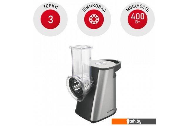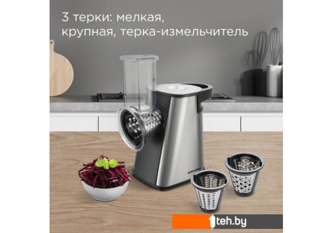 | Информация | ? 3 терки ? Мультирезка оснащена 3 сменными насадками: мелкой, крупной и измельчителем, которые легко нарежут овощи, фрукты, сыр и орехи для ваших блюд. ? Шинковка для нарезки ломтиками ? Прибор укомплектован шинковкой, чтобы вы могли быстро нарезать капусту и другие продукты на узкие и мелкие кусочки. ? Мощность 400 Вт ? Овощерезка оборудована высококачественным двигателем мощностью 400 Вт для нарезки овощей и фруктов. ? Компактность и легкость ? Эргономичный прибор в современном стиле займет минимум пространства и весит всего 1,55 кг. ? Удобная ручка ? Практичная ручка из качественного пластика позволяет легко взять и перенести прибор на нужное место. ?? Нескользящие ножки ? Овощерезка имеет нескользящие ножки, чтобы прочно стоять на одном месте и не повредить стол в процессе работы. |