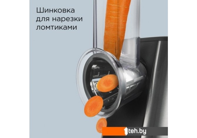 | Полная комплектация | - крупная терка; - мелкая терка; - моторный блок; - руководство по эксплуатации; - сервисная книжка; - толкатель; - шинковка; - терка-измельчитель; - блок мультирезки. |