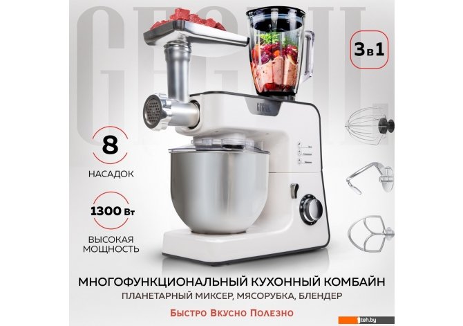 | Функции | мясорубка, блендер, взбивание, смешивание, замешивание дрожжевого теста |