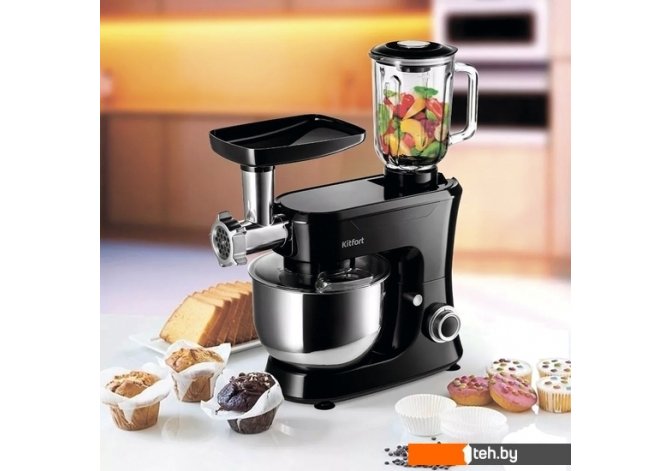 | Информация | Многофункциональный и мощный планетарный миксер КТ-3061 поможет вам смешать ингредиенты, взбить яичный белок или сливки, приготовить картофельное пюре, соус, замесить тесто, приготовить фарш, смешать ледяной коктейль или смузи. В комплекте идут венчик для взбивания, крюк для замеса крутого теста, насадка для смешивания и приготовления пюре. Форма насадок и чаши подобраны так, что почти при любом количестве продуктов насадка качественно их перемешает. Высокопроизводительная мясорубка позволяет рубить мясо с производительностью 1,5 кг/мин. В комплект мясорубки входят 2 решётки для изготовления фарша, а также специальные насадки для колбас и кеббе. |