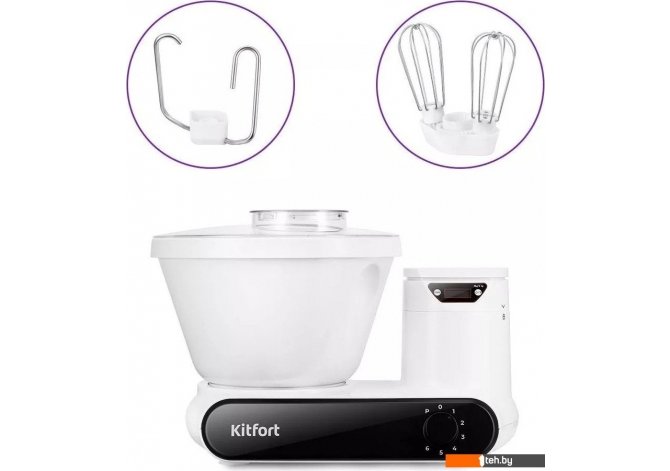 | Информация | - Тестомесильная машина КТ-3478 идеально подходит для замешивания различных видов теста: от слоёного до жидкого. Насадка для замешивания обеспечивает идеальное качество смешивания без комков. - На моторном блоке установлены съёмные кухонные весы, которые позволяют определять вес до 5 кг с точностью до 1 грамма. Весы оснащены жидкокристаллическим дисплеем с функциями тарирования и выбора единиц измерения. - В комплекте идут насадка для замешивания, венчики для взбивания и защитный кожух. Крышка предотвращает разбрызгивание ингредиентов при замешивании. Через загрузочное отверстие в крышке можно добавлять ингредиенты во время работы, не выключая прибор. - Управление прибором осуществляется с помощью регулятора скорости. Тестомесильная машина может работать в автоматическом режиме. Всего у прибора 6 скоростей и импульсный режим. - Ёмкость чаши составляет 5 литров и изготовлена из пищевого пластика. Она закрепляется на моторном блоке и укомплектована защитной крышкой с отверстием. - Надёжный двигатель и прорезиненные ножки с присосками обеспечивают быстрое и эффективное смешивание ингредиентов для теста. |