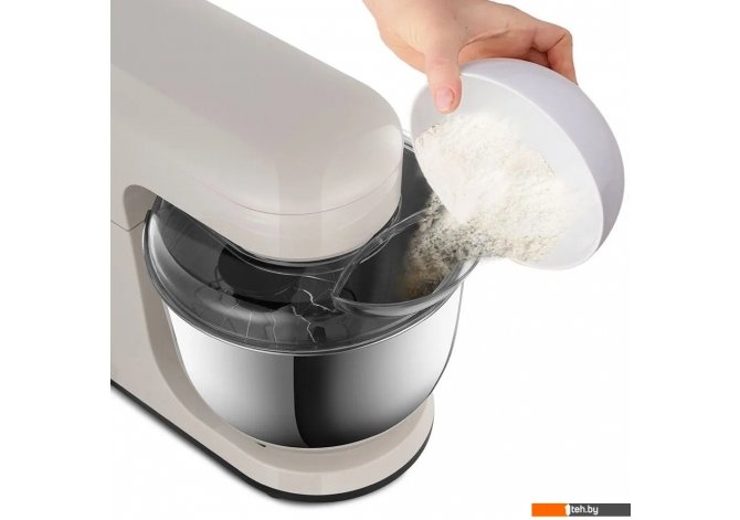 | Информация | Планетарный миксер КТ-3493 поможет вам смешать ингредиенты, взбить яичный белок или сливки, приготовить картофельное пюре, соус, крем, мусс, замесить жидкое тесто для блинов и крутое – для пельменей и пирогов. При взбивании, смешивании или замешивании теста миксер может работать в полностью автоматическом режиме. Вам достаточно только положить ингредиенты, надеть насадку и включить прибор. У прибора 8 скоростей работы и импульсный режим. В комплекте есть три насадки: венчик – для взбивания яичных белков, сливок, насадка для смешивания – для негустых ингредиентов, картофельного пюре, кондитерских смесей, теста для тортов. Крюк для замешивания подойдёт для приготовления густого теста. Миксер оснащён планетарной системой смешивания: во время работы насадка вращается вокруг своей оси и одновременно движется по окружности по внутреннему объёму чаши. Это обеспечивает идеальное качество смешивания без комков. Миксер оснащён чашей ёмкостью 4,2 литра. Чаша изготовлена из нержавеющей стали, она прочная и в ней можно смешивать даже горячие ингредиенты. Чаша укомплектована защитной крышкой с отверстием. Крышка предотвращает разбрызгивание ингредиентов при замешивании. Через загрузочное отверстие в крышке можно добавлять ингредиенты во время работы, не выключая миксер и не поднимая моторный блок. |