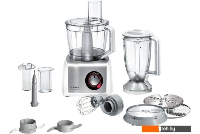 | Полная комплектация | - Большая пластиковая чаша с крышкой и толкателем, объем3,9л для 750гр муки + ингредиенты (макс. 1.5 кг)- Блендер (пластик), объем 1,5 л- Двухсторонний диск - шинковка (крупная/мелкая),двухсторонний диск - терка (крупная/мелкая)- Диск для картофеля фри- Диски из нержавеющей стали- Держатель дисков- Насадка для замеса теста (пластик)- Венчик из нерж. стали для взбивания крема, яичныхбелков и легкого теста |