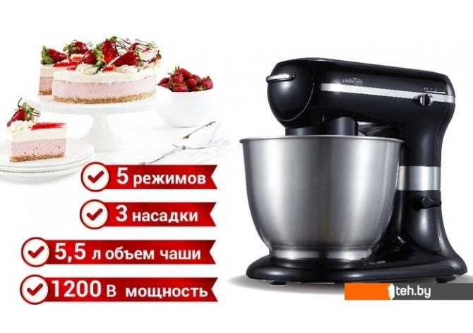 | Функции | взбивание, смешивание, замешивание дрожжевого теста |