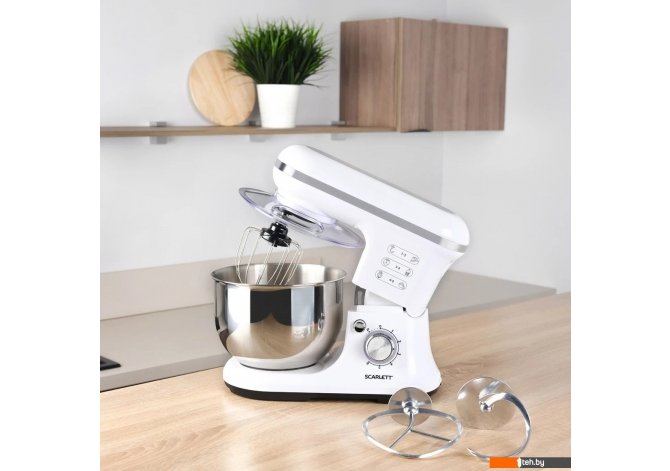 | Информация | - Планетарный миксер SC-SM10S50 мощностью 1400 Вт – незаменимый помощник на кухне! - 6 скоростей и импульсный режим работы позволят подобрать оптимальную скорость для приготовления различных блюд. - Универсальный белый цвет прибора, металлическая декорация и яркая подсветка скоростной панели управления отлично впишутся в интерьер любой кухни. - В комплект входит крюк для замешивания густого теста, венчик для взбивания белков, лопатка для смешивания, а также чаша объемом 5.2л. - Венчик и чаша миксера выполнены из нержавеющей стали, что делает их пригодными для мытья в посудомоечной машине. - Крышка с отверстием для добавления ингредиентов поможет сохранить рабочую поверхность в чистоте, а нескользящее основание обеспечит устойчивость прибора в работе с продуктами любой консистенции. - Металлические шестеренки, которые обеспечивают работу важнейших элементов, защита мотора от перегрева и перегрузки, а также защита от включения с открытой чашей сделают эксплуатацию прибора наиболее эффективной и безопасной. |