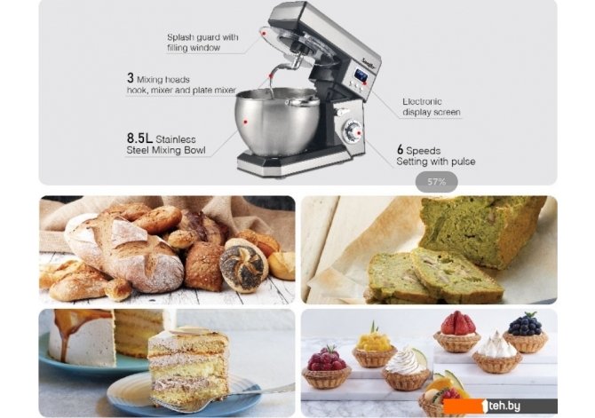 | Функции | взбивание, смешивание, замешивание дрожжевого теста |