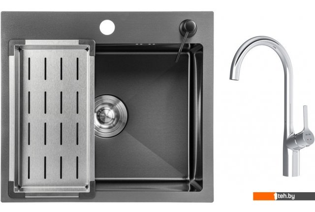 | Комплектация | Мойка кухонная Saniteco 5045 Nano (с сифоном, дозатором и коландером); Смеситель AM.PM Spike F9S07000 (хром) |