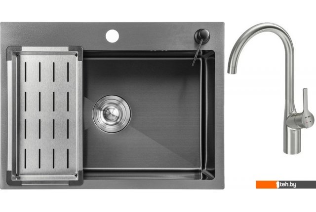 | Комплектация | Мойка кухонная Saniteco 6045 Nano (с сифоном, дозатором и коландером); Смеситель AM.PM Spike F9S07011 (сатин) |