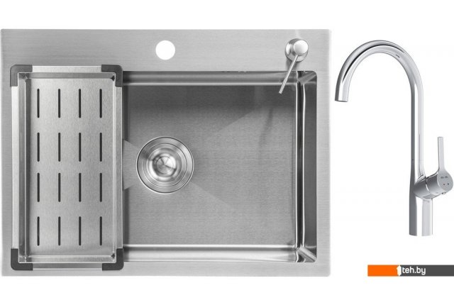 | Комплектация | Мойка кухонная Saniteco 6045 (с сифоном, дозатором и коландером), Смеситель AM.PM Spike F9S07000 (хром) |