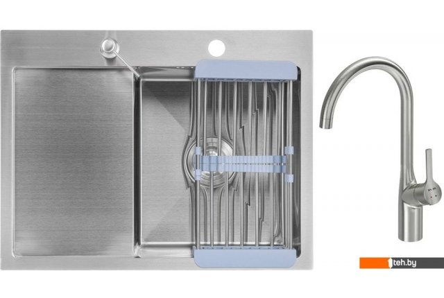 | Комплектация | мойка кухонная Saniteco 6550-R (с сифоном, дозатором и коландером); Смеситель AM.PM Spike F9S07011 (сатин) |