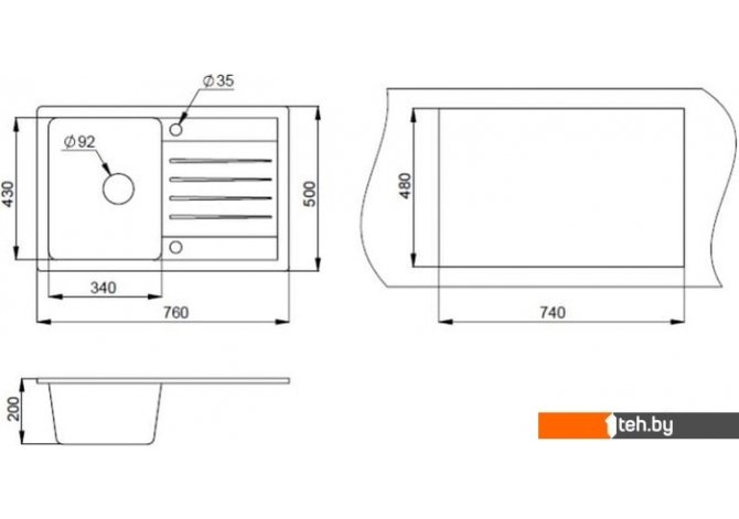 | Ширина мойки | 76 см |
