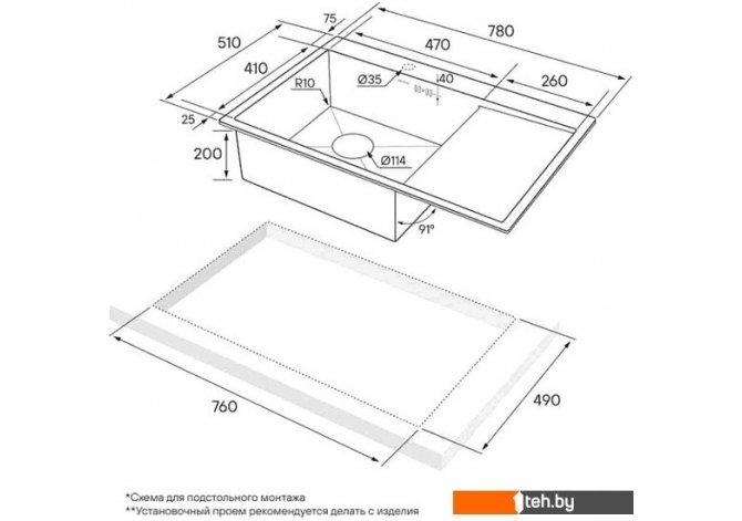| Способ установки | врезная на столешницу, врезная вровень со столешницей |