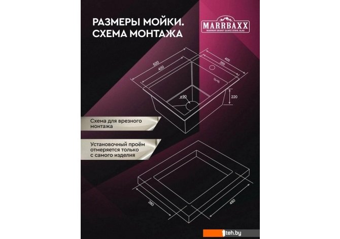 Фотографии, описание и технические характеристики модели мойки для кухни MARRBAXX B4050-R B4050-MR (графит) взяты из открытых источников, официального сайта производителя или представительства MARRBAXX в Республике Беларусь.
