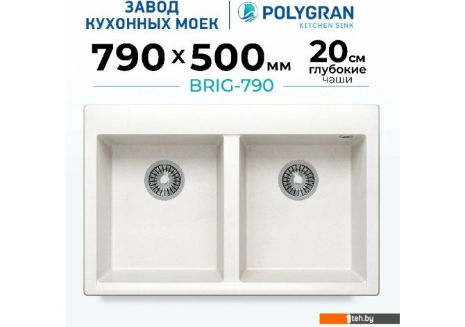 Фотографии, описание и технические характеристики модели мойки для кухни Polygran Brig 790 (белый хлопок) взяты из открытых источников, официального сайта производителя или представительства Polygran в Республике Беларусь.