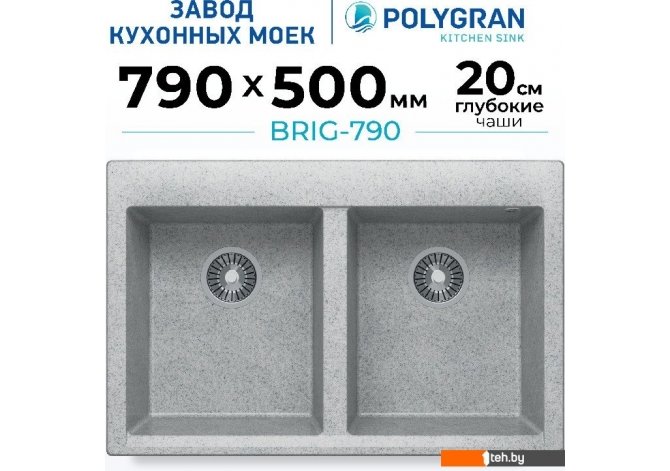 Фотографии, описание и технические характеристики модели мойки для кухни Polygran Brig 790 (светло-серый) взяты из открытых источников, официального сайта производителя или представительства Polygran в Республике Беларусь.