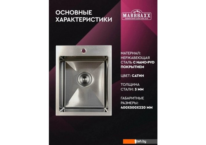 Фотографии, описание и технические характеристики модели мойки для кухни MARRBAXX C4050-R C4050-MR (сатин) взяты из открытых источников, официального сайта производителя или представительства MARRBAXX в Республике Беларусь.