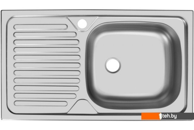 | Информация | Кухонная мойка из нержавеющей стали, врезная, с большой чашей и широким крылом. |