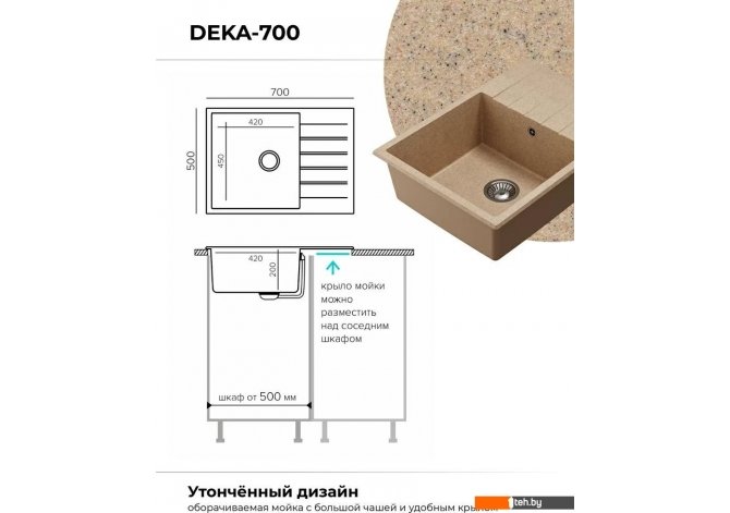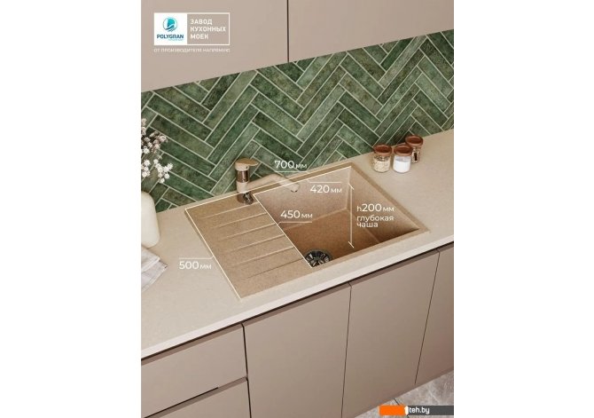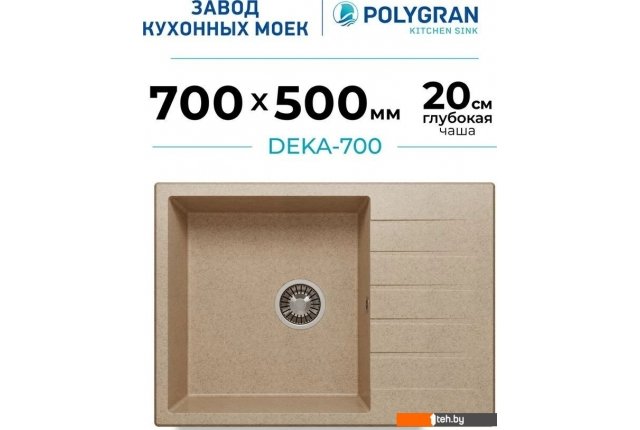 Фотографии, описание и технические характеристики модели мойки для кухни Polygran Deka 700 (песочный) взяты из открытых источников, официального сайта производителя или представительства Polygran в Республике Беларусь.