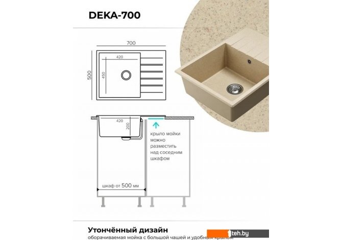 Фотографии, описание и технические характеристики модели мойки для кухни Polygran Deka 780 (опал) взяты из открытых источников, официального сайта производителя или представительства Polygran в Республике Беларусь.
