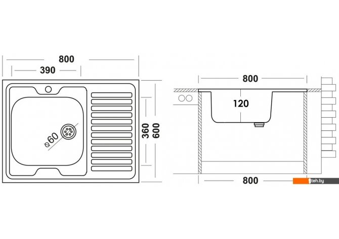 | Ширина мойки | 60 см |