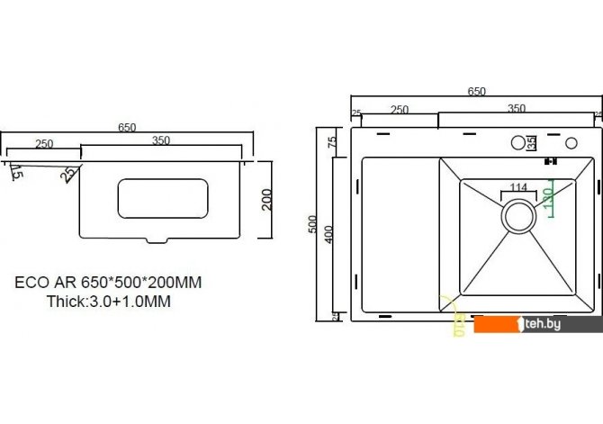 Если хотите купить мойка для кухни ARFEKA ECO AR 650*500 R SATIN то следует уточнить все параметры и габариты модели перед покупкой. Представленые характеристики на сайте 1teh.by могут отличаться от действительных или указанных производителем. Описание, фото товара и технические характеристики представлены для справки.