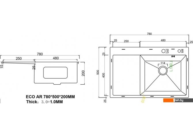 Если хотите купить мойка для кухни ARFEKA ECO AR 780*500 R BLACK PVD NANO то следует уточнить все параметры и габариты модели перед покупкой. Представленые характеристики на сайте 1teh.by могут отличаться от действительных или указанных производителем. Описание, фото товара и технические характеристики представлены для справки.