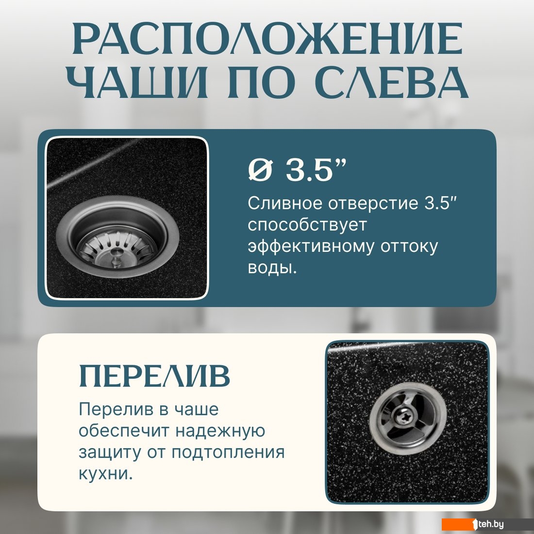 | Информация | - Мойка кухонная Fama — это элегантное и практичное решение для вашего современного кухонного пространства. Изготовленная из керамогранита, она сочетает в себе прочность и стиль, идеально подходя для повседневного использования. Прямоугольная форма и матовая черная поверхность придают ей современный и сдержанный вид, который легко вписывается в любой интерьер. |