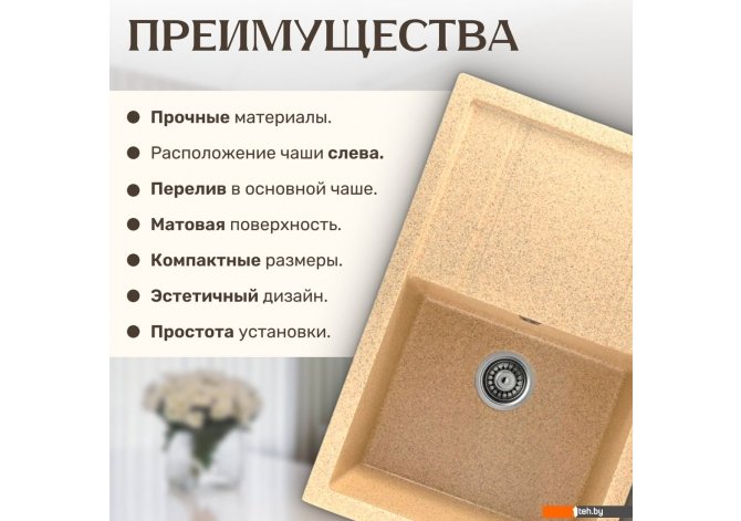 Если хотите купить мойка для кухни Saniteco Fama (песок) то следует уточнить все параметры и габариты модели перед покупкой. Представленые характеристики на сайте 1teh.by могут отличаться от действительных или указанных производителем. Описание, фото товара и технические характеристики представлены для справки.