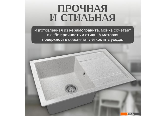 | Информация | - Мойка кухонная Fama — это идеальное сочетание удобства и стиля для вашей кухни. Изготовленная из керамогранита, она отличается высокой прочностью и устойчивостью, что делает её отличным выбором для повседневного использования. Прямоугольная форма и матовая серая поверхность придают ей современный и элегантный вид, который легко вписывается в любой интерьер. |