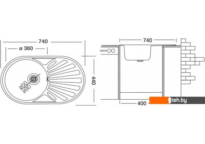 | Глубина мойки | 44 см |