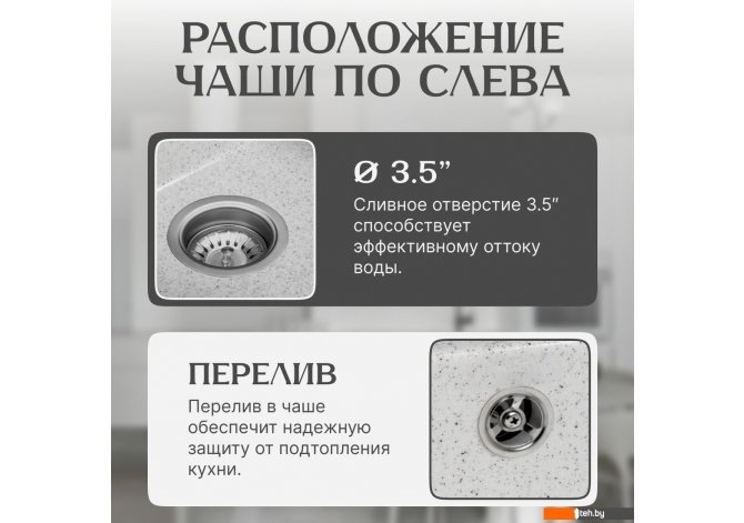 | Диаметр сливного отверстия | 3.5" |