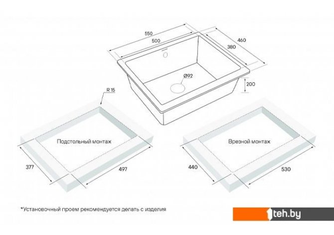 | Способ установки | врезная на столешницу, врезная под столешницу, врезная вровень со столешницей |
